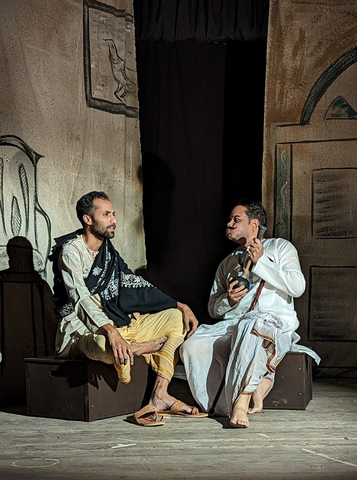 আলু পেঁয়াজ এর ছোটো দোকানের কারবারি মামা ও ভাগ্নে অফ-টাইমে নাট্য প্রদর্শনী করে। এটি তাদের প্রিয় শখ, নিজস্ব বিনোদন। তারাই তাদের কথন ও একালের ব্যাখ্যা সূত্রে ওদের শোনা এই শেক্ষপীরের কাহিনীর কিছু দৃশ্যকে গান, নাচ ও মজাদার কথার সুতো দিয়ে জুড়ে দেবে।